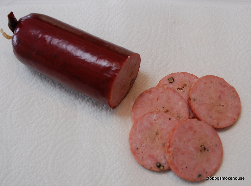Summer Salami is a popular salami also known as Thuringer. It is a semi-dry cured salami that is smoked after it is allowed to cure to develop a natural tang. It is very popular with hunters who use venison & elk meat and this recipe works very well substituting wild game meat for the pork. I would however make sure that all fat is trimmed from the meat and add the bacon in this recipe or you can use pork back fat.